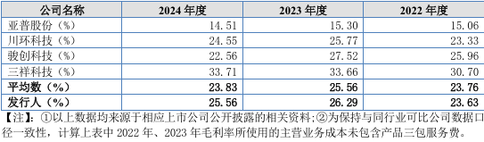 报告期内,发行人与同行业可比公司毛利率情况如下: